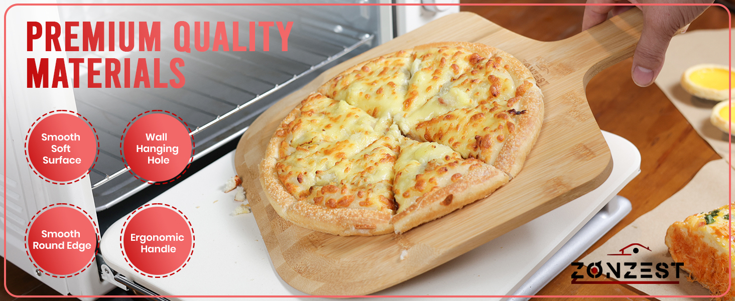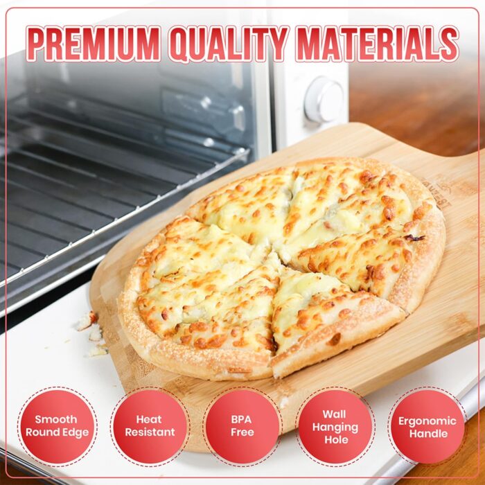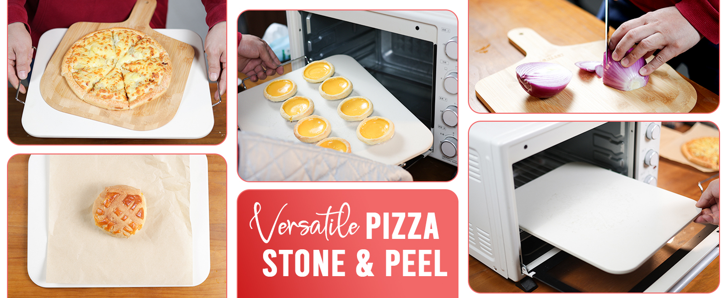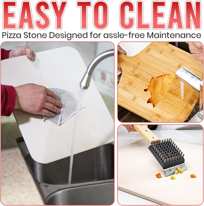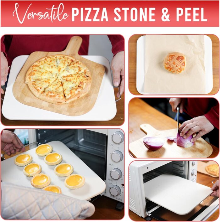 - 【Premium Quality Materials】Crafted with Durable Materials, Featuring a Pizza Stone Made to High Temperature Cordierite the Pizza Stone is in Your Oven for 30 Minutes at 400+ Degrees for Optimal Pizza Baking, Complemented by a Sturdy Bamboo Pizza Peel for Easy Handling and Serving.