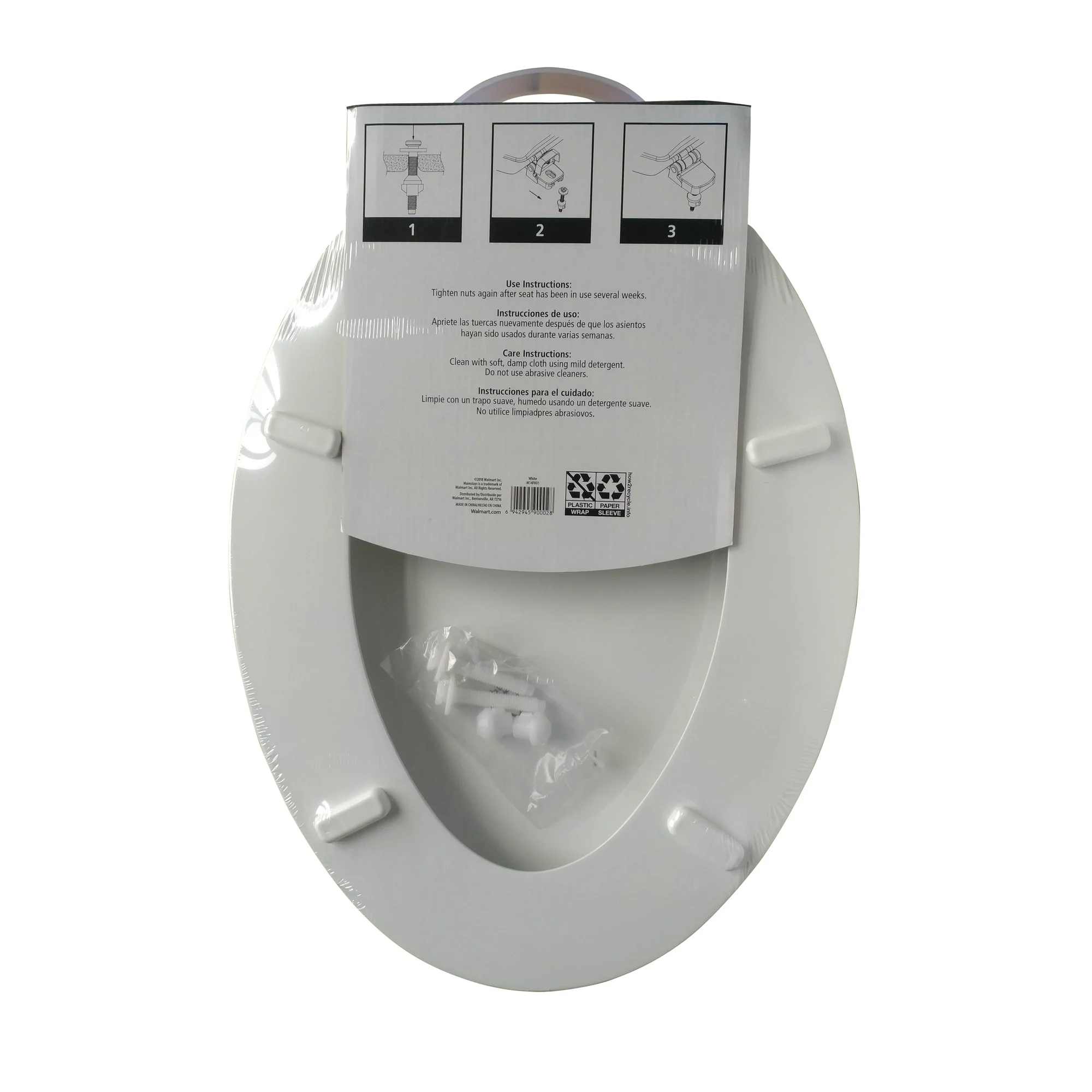 Indulge yourself with the pinnacle of comfort when you are sitting on the throne in your home with this Mainstays Elongated White Wood Toilet Seat. This elegant toilet seat fits most elongated bowls and can be easily assembled using the hardware included in the packaging. To maintain the pristine condition of this luxurious toilet seat, clean with a soft damp cloth while avoiding abrasive cleaners. The Mainstays Elongated White Wood Toilet Seat is a pleasure to sit on and is sure to greatly improve your experience in the bathroom.